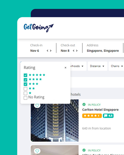 There are many popular hotel booking websites, such as Booking.com and Expedia, but for business travelers it’s best to use a software like GetGoing who gives you a hand with everything you need to successfully book accommodations.